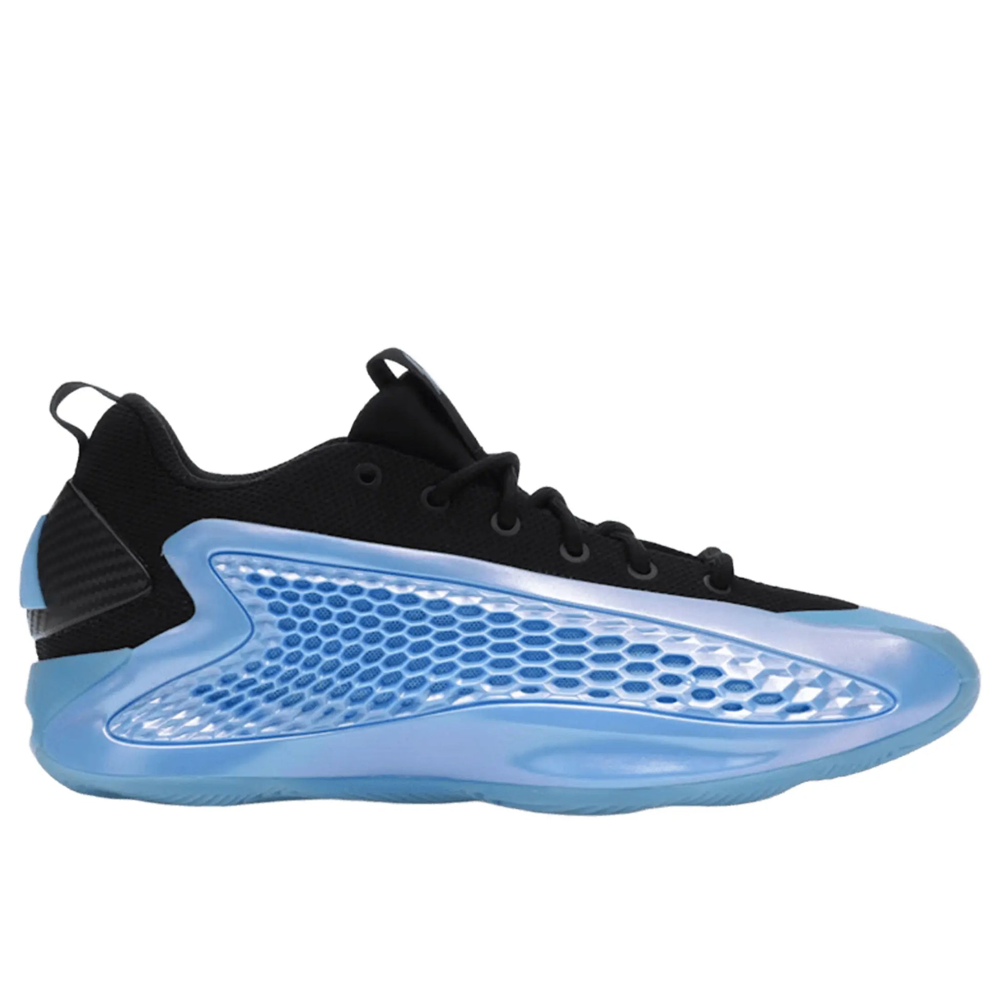 The adidas AE-1 Low “Blue Burst” (JI4070) is a standout release in Anthony Edwards’ signature line, combining performance-driven design with vibrant aesthetics. Released on December 14, 2024, this model features a black Prime blue knit upper, offering breathability and support. The metallic blue honeycomb TPU midfoot panel provides structural reinforcement, while the faux carbon fiber heel counter adds a sleek, modern touch. Blue accents are present on the toecap, Three Stripes branding, and tongue pull tab, enhancing the shoe's dynamic look. The combination of BOOST and Light strike cushioning ensures responsive comfort, making it suitable for both on-court performance and everyday wear.