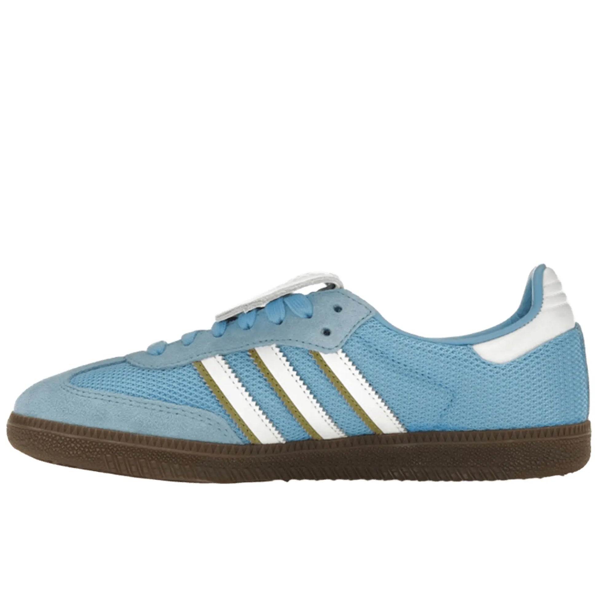 The adidas Samba LT in Semi Blue Burst puts a bold twist on the heritage silhouette. Featuring a bright semi-blue mesh base with suede overlays at the toe and eyestay, it’s accented by crisp white Three Stripes and heel tab. An oversized fold-over tongue with Trefoil branding adds a soccer-inspired edge, while the classic gum outsole keeps the retro DNA intact. Released in 2024, this pair perfectly blends performance roots with street-ready flair.