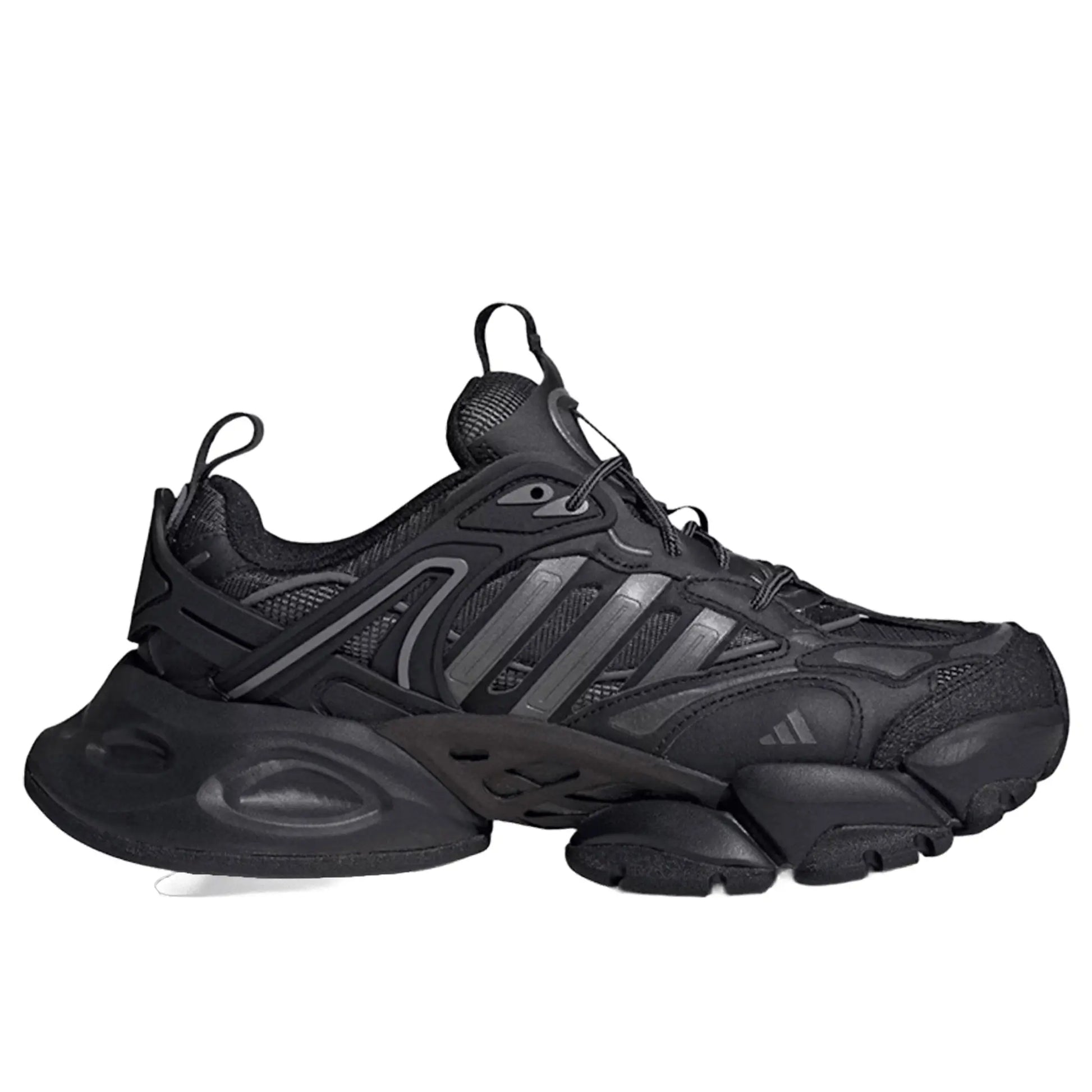 The Adidas XLG Runner Deluxe “Black” is a bold, all-black sneaker built for modern streetwear. Its upper combines breathable mesh with supportive synthetic overlays, giving it both function and style. The chunky sculpted midsole delivers cushioned comfort and a powerful silhouette, while the durable rubber outsole ensures everyday grip. With its oversized proportions and sleek tonal design, this sneaker is perfect for a versatile, statement look.
