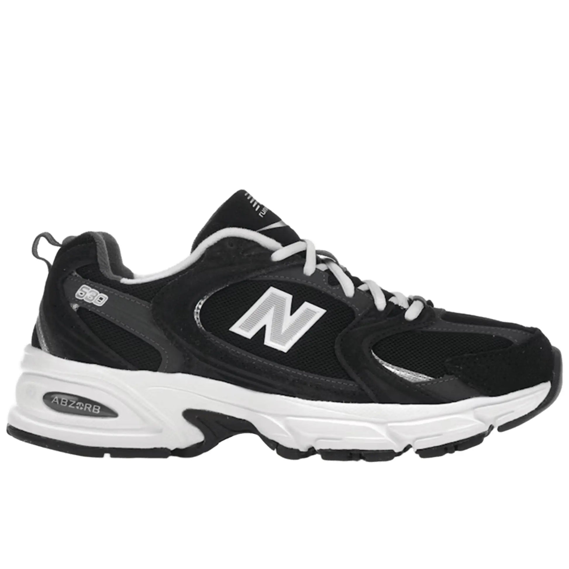 The New Balance 530 “Classic Black / Grey” is a modern iteration of the iconic 530 silhouette, blending retro aesthetics with contemporary design elements. The upper features a combination of breathable mesh and premium leather and suede overlays in classic black and grey tones, offering both durability and style. The ABZORB midsole technology provides superior cushioning and shock absorption, ensuring comfort during extended wear. A durable rubber outsole completes the design, delivering reliable traction and support.